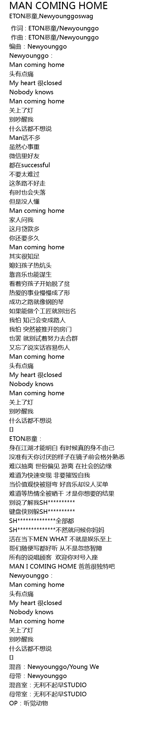 | [00:00.00] | 作词 : ETON恶童/Newyounggo |