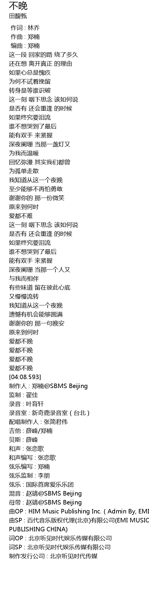 | [04:11.859] | 词OP : 北京听见时代娱乐传媒有限公司 |