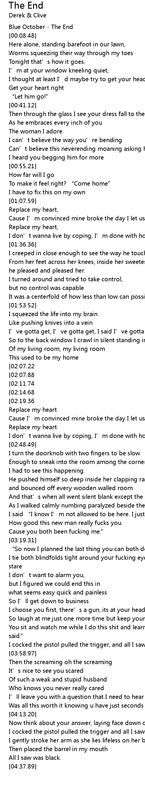 | [04:16.39] | I cocked the pistol pulled the trigger and all I saw was red |