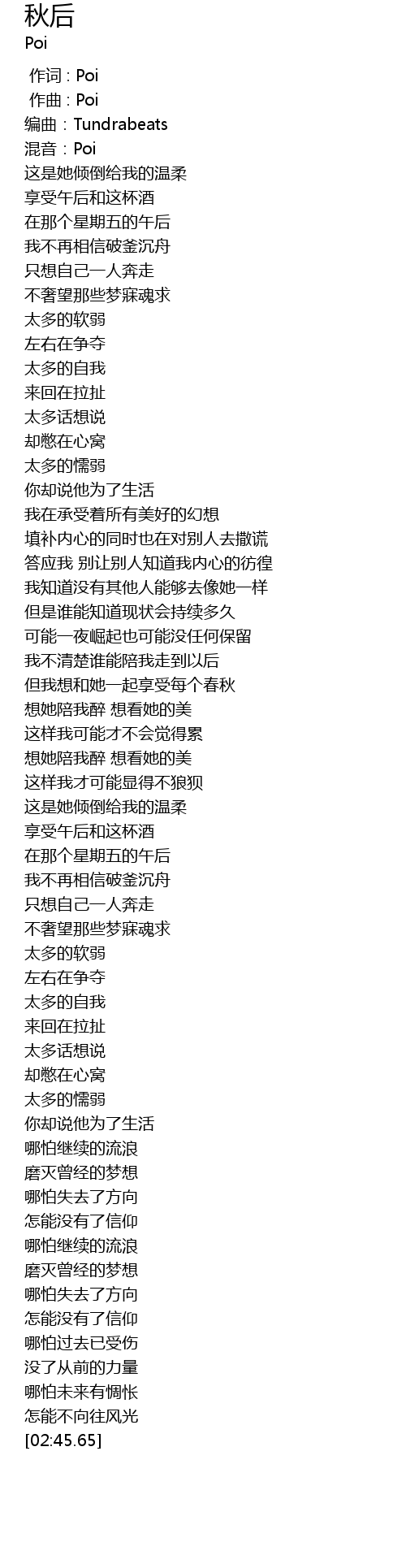 | [00:00.00] | 作词 : Poi |