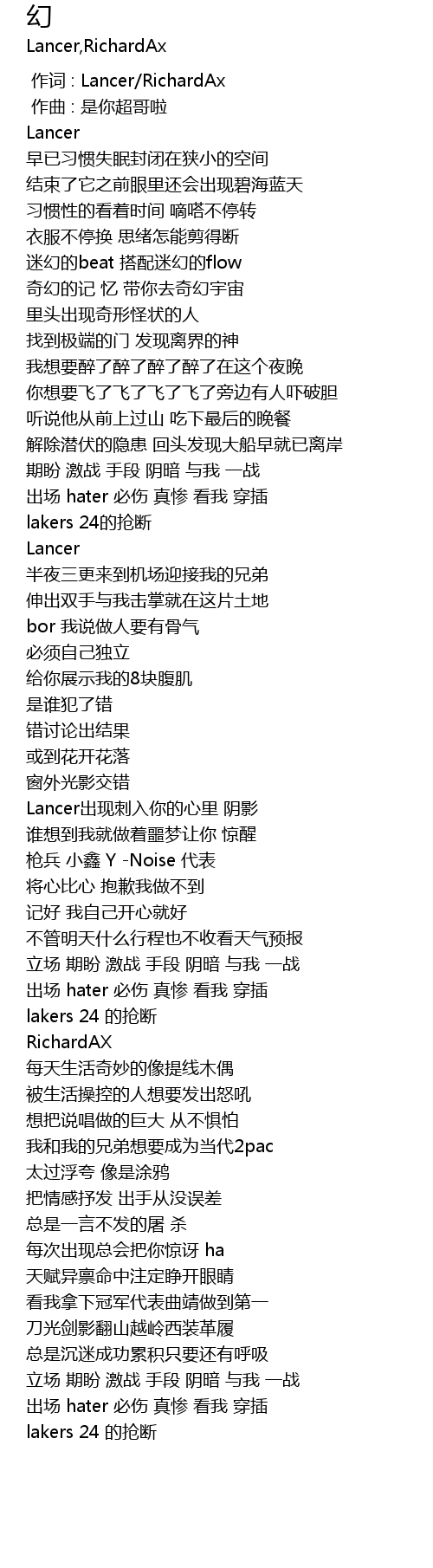 | [00:00.000] | 作词 : Lancer/RichardAx |