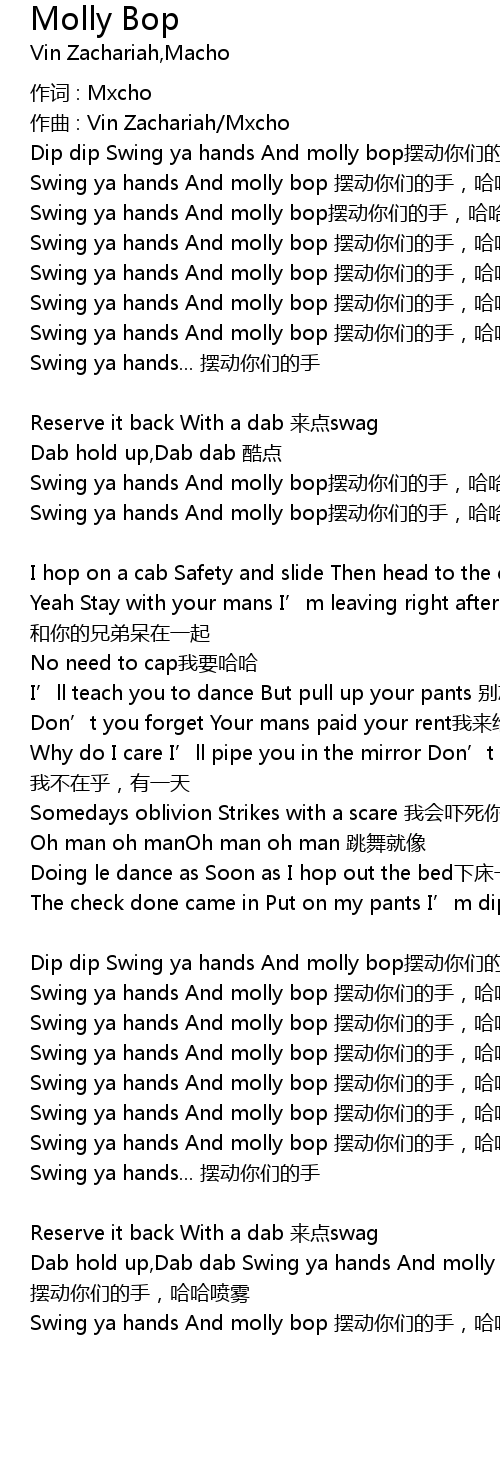 | Swing ya hands And molly bop bai dong ni men de shou, ha ha pen wu | |