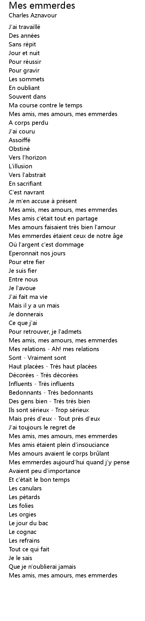 | Mes amours faisaient trè s bien l' amour | |