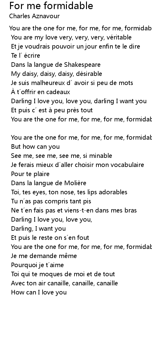 | You are the one for me, for me, for me, formidable | |