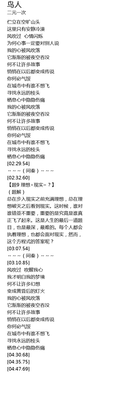 | [02:34.10] | 【题9 理想+现实=?】 |