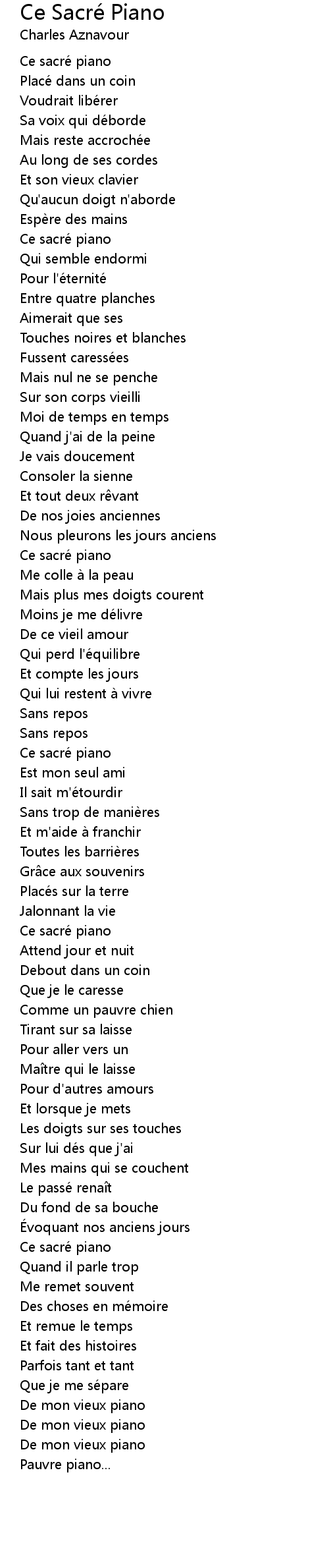 | 歌曲 | Ce Sacré Piano |