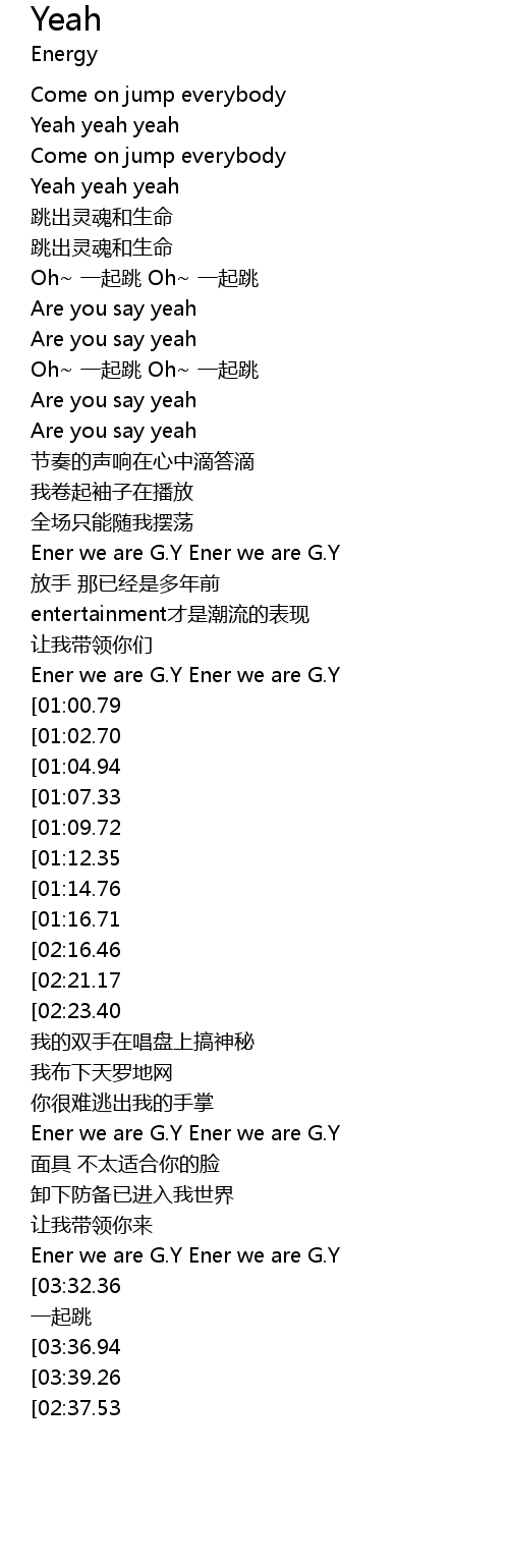 | [01:53.71] | Ener we are G. Y Ener we are G. Y |