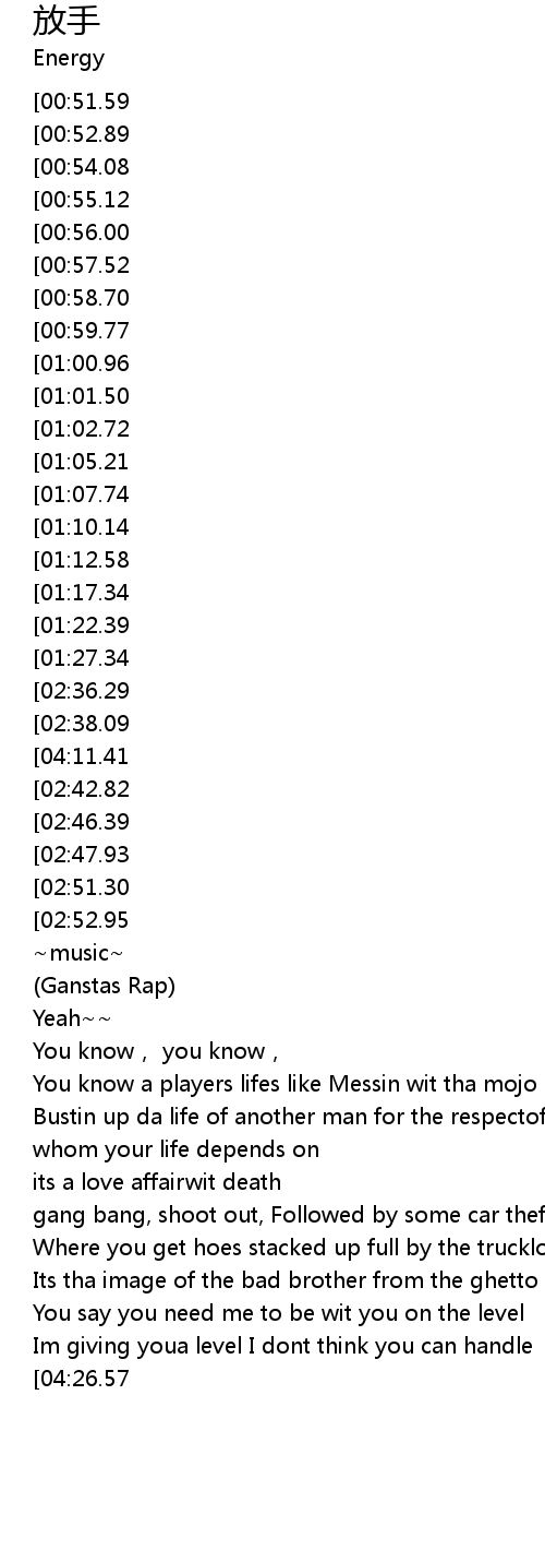 | [04:21.36][02:51.30][01:46.50] | dōu gēn nǐ shuō le fàng shǒu |
