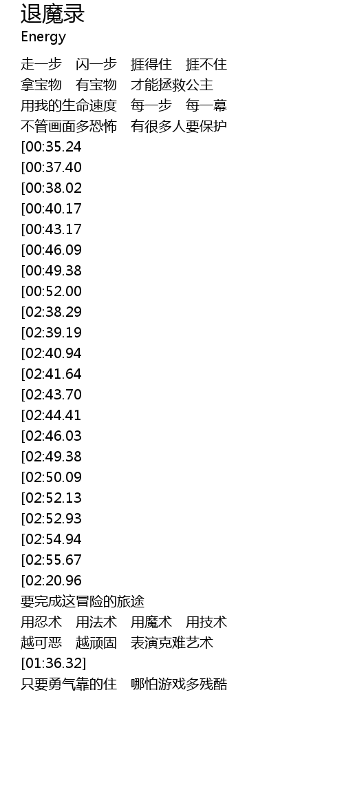 | [03:18.57][02:55.67][02:19.14][01:12.10] | 要把魔鬼怪通收伏 |
