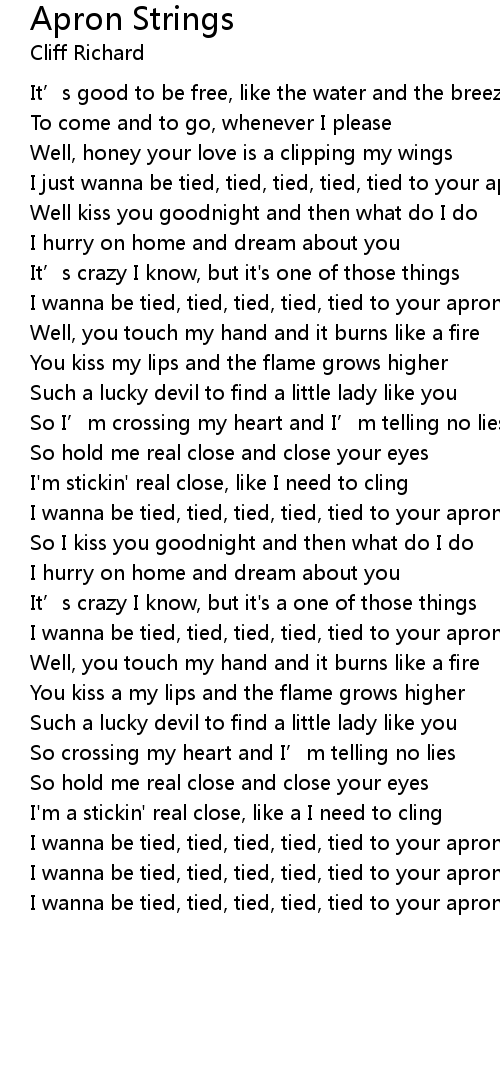 | I wanna be tied, tied, tied, tied, tied to your apron strings | |