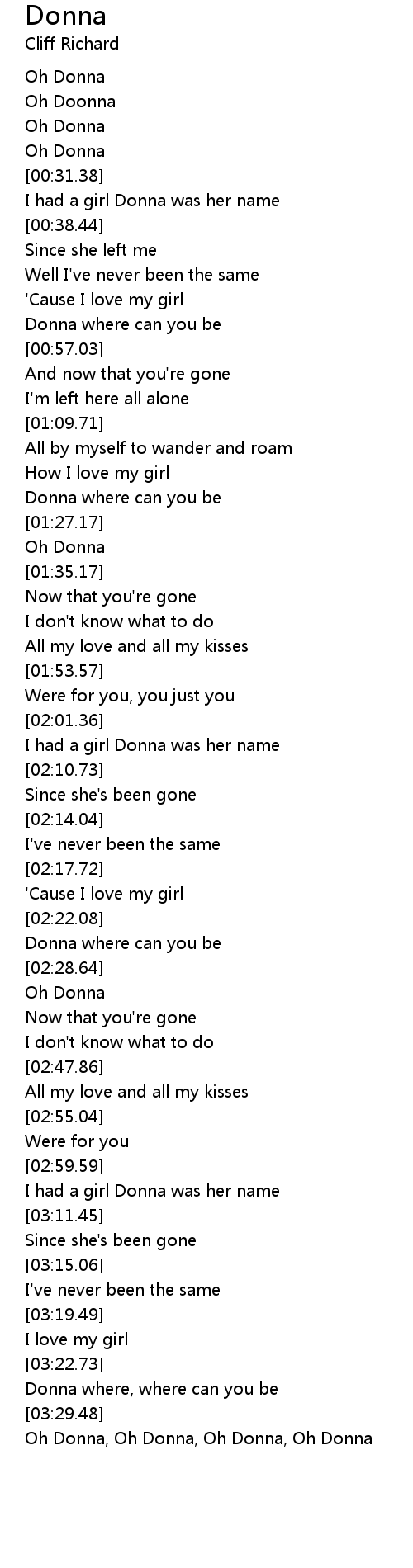 Oh Donna, Oh Donna, Oh Donna, Oh Donna |