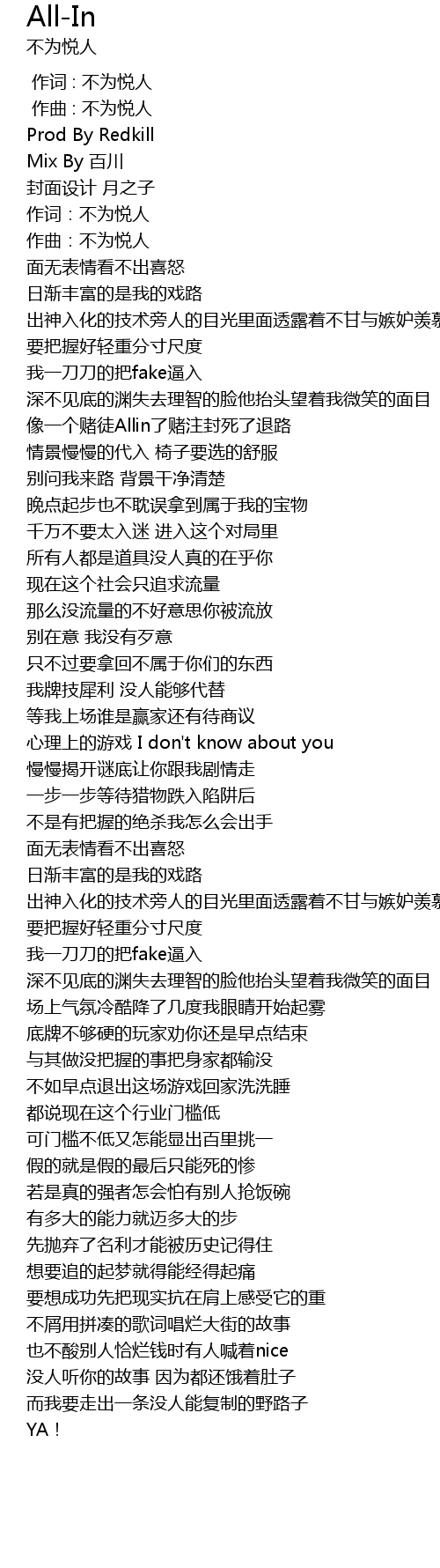 | [00:15.832] | 作曲:不为悦人 |