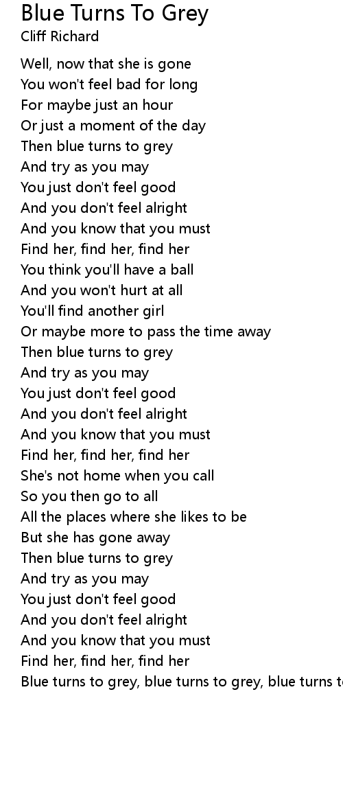 Blue turns to grey, blue turns to grey, blue turns to grey |