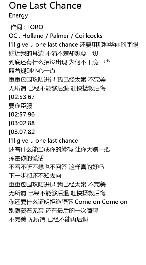 [03:27.33][03:07.82][02:21.12][02:10.77][01:12.73] Oh~ please don't waste ur time I'll give u one last chance