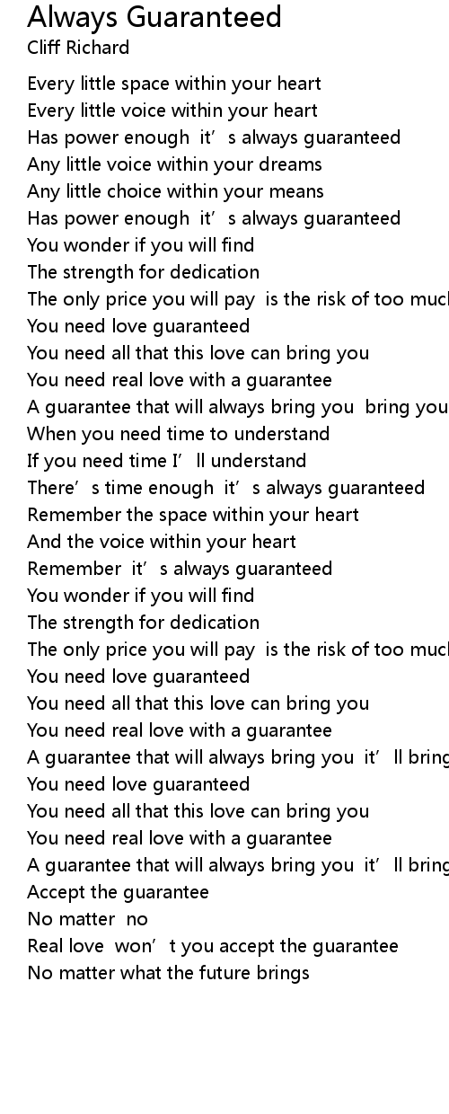 | [00:40.91] | Has power enough it' s always guaranteed |