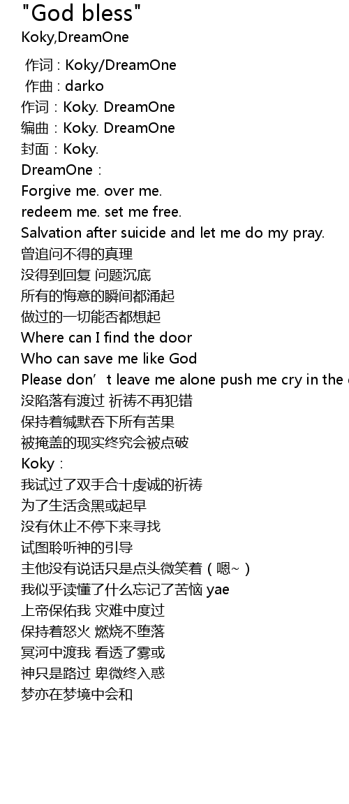 | [00:00.000] | 作词 : Koky/DreamOne |