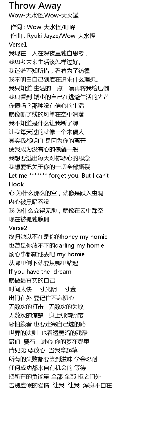 | [00:01.000] | 作曲 : Ryuki Jayze/Wow-大水怪 |