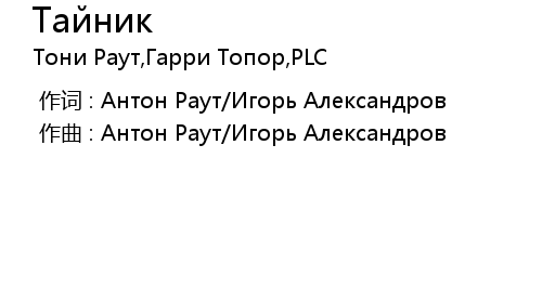 作词 : Антон Раут/Игорь Александров