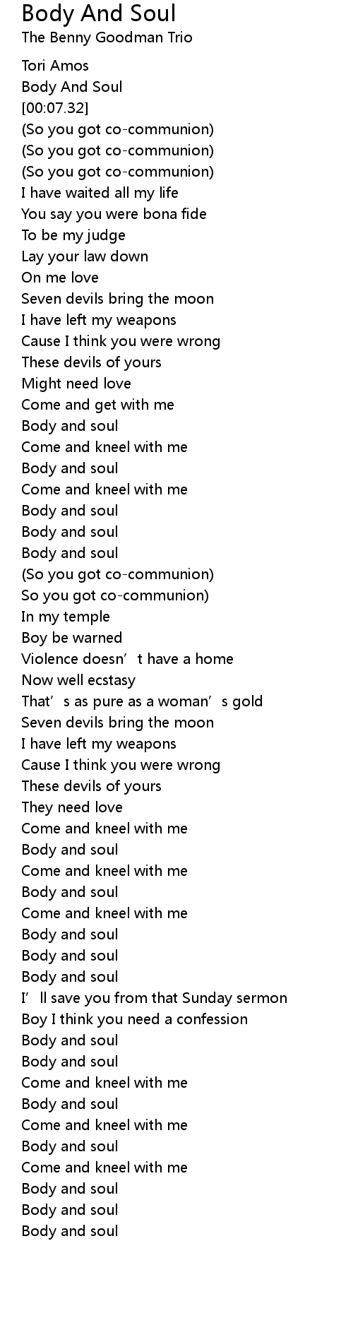 | [03:20.00] | Body and soul |