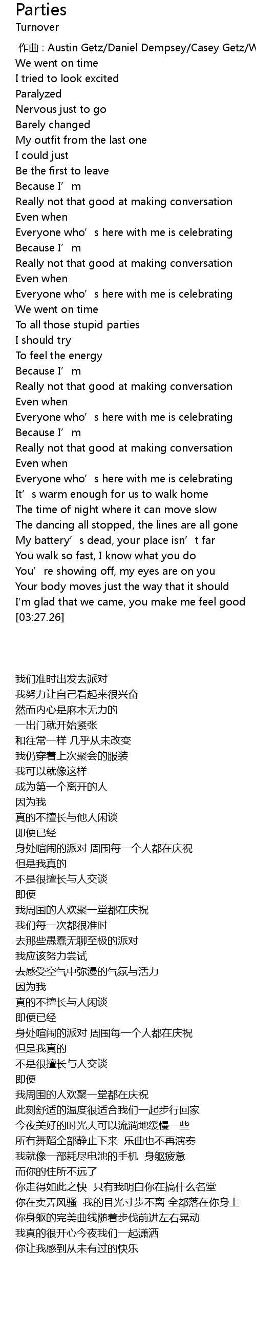 | 歌曲 | Parties |