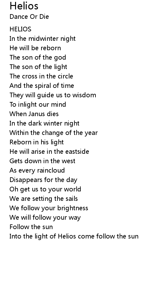 Into the light of Helios come follow the sun |