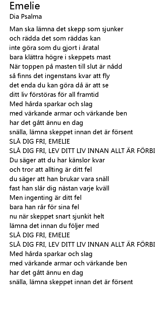 | SLÅ DIG FRI, EMELIE | |
