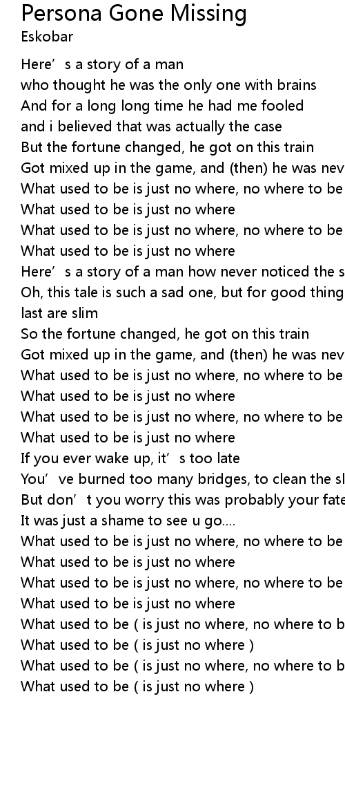 | [02:35.72] | What used to be is just no where, no where to be found |