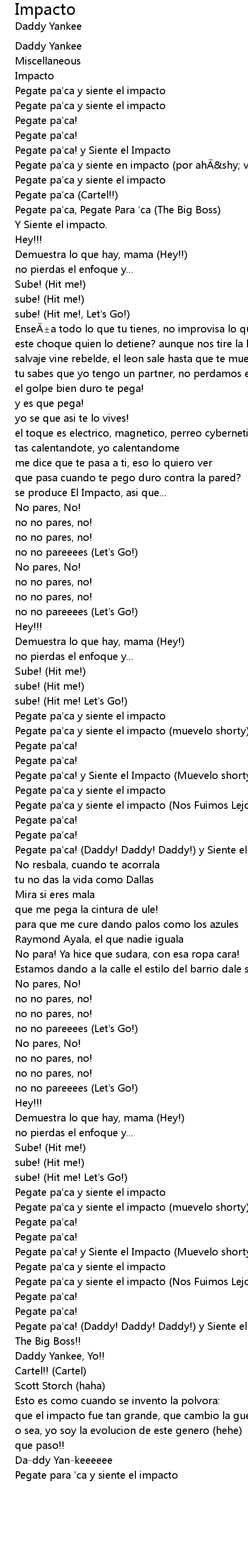 | Pegate pa' ca! Daddy! Daddy! Daddy! y Siente el Impacto Yeah! | |