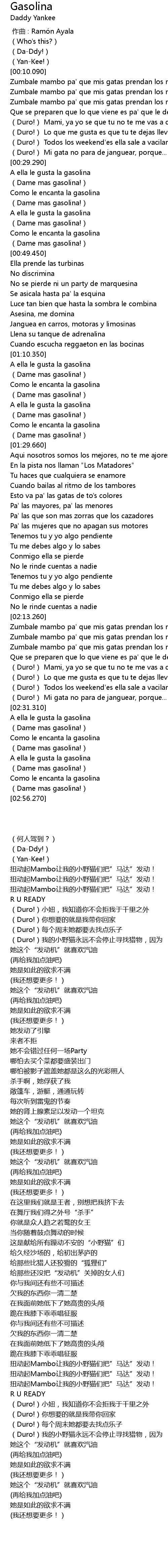 | [02:32.280] | A ella le gusta la gasolina |