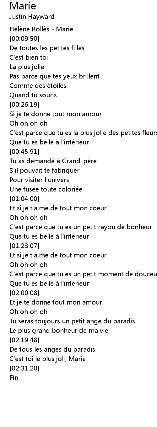 | [02:27.62] | C' est toi le plus joli, Marie |