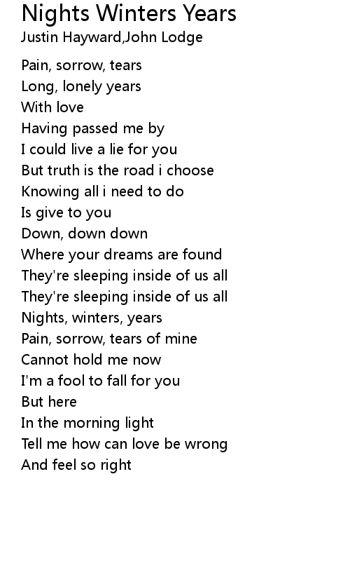 | 歌曲 | Nights Winters Years |