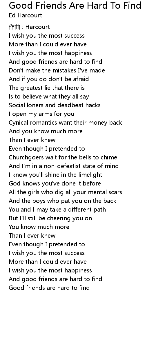 | 歌曲 | Good Friends Are Hard To Find |