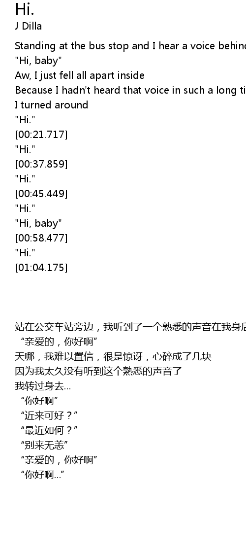 | [00:00.460] | 站在公交车站旁边,我听到了一个熟悉的声音在我身后说道 |