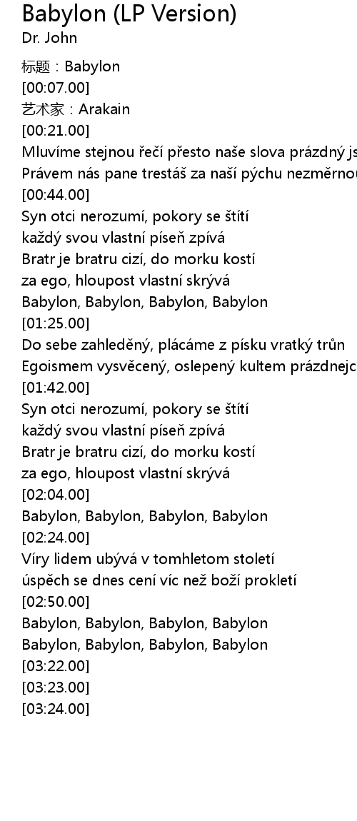 | [03:21.00] | Babylon, Babylon, Babylon, Babylon |