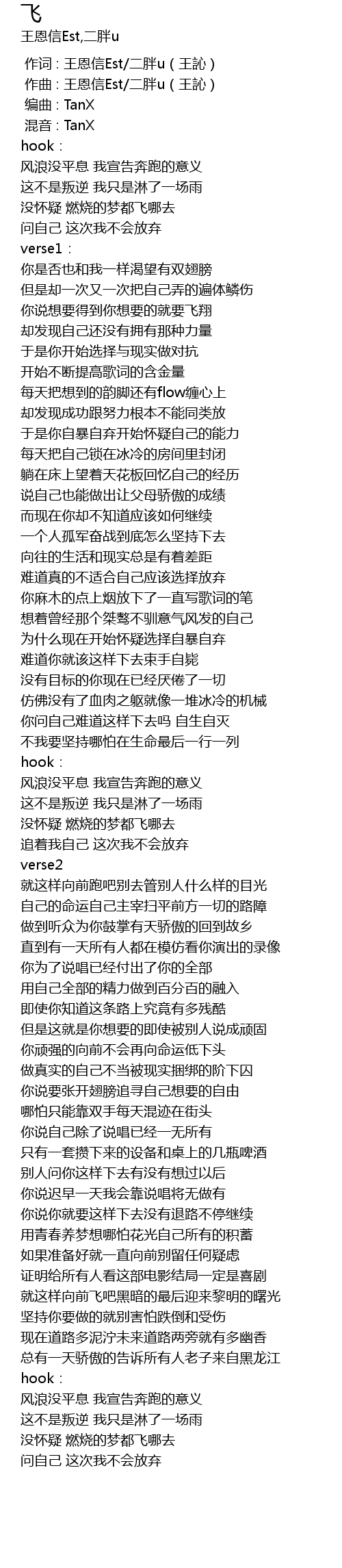 | [00:57.753] | 每天把想到的韵脚还有flow缠心上 |