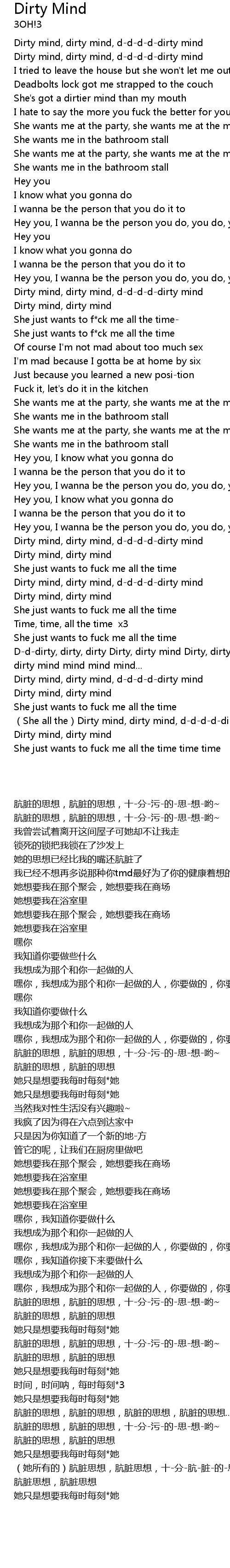 | [03:00.000] | She all the Dirty mind, dirty mind, dddddirty mind |