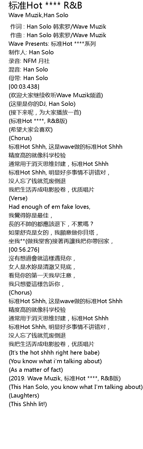 | [02:02.278] | (2019. Wave Muzik, 标准Hot ****, R&B版) |