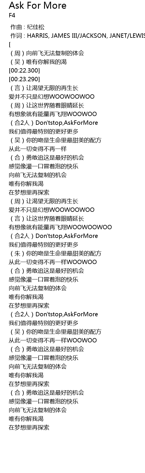 | [00:54.989] | hé 2 rén Don' tstop, AskForMore |