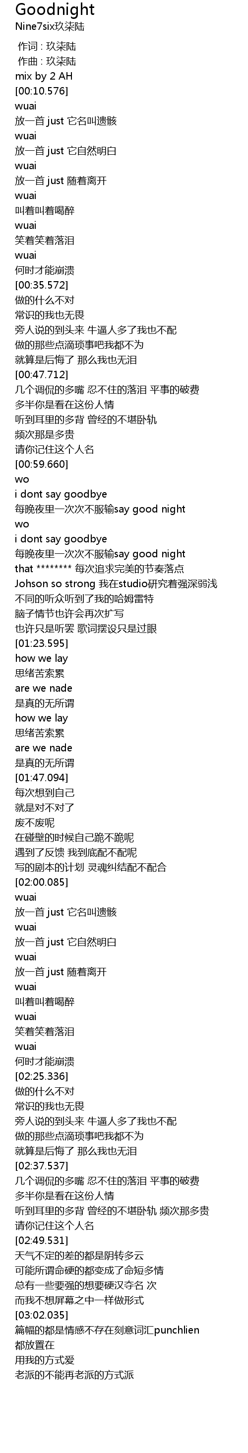 | [02:04.590] | wuai |