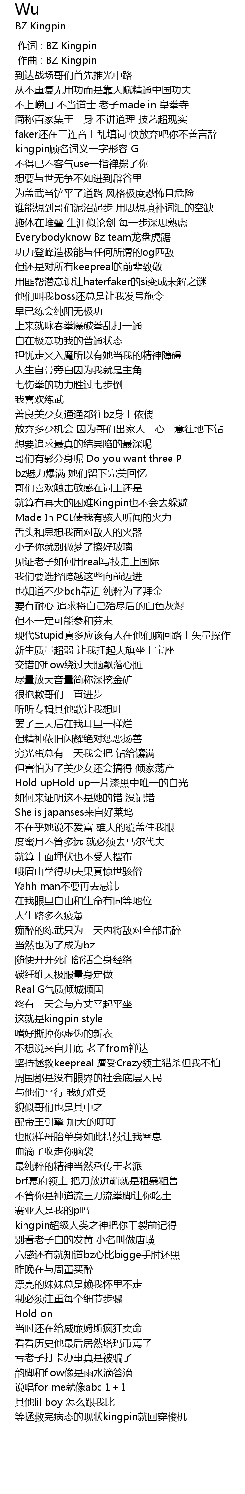 | [00:01.000] | zuo qu : BZ Kingpin |