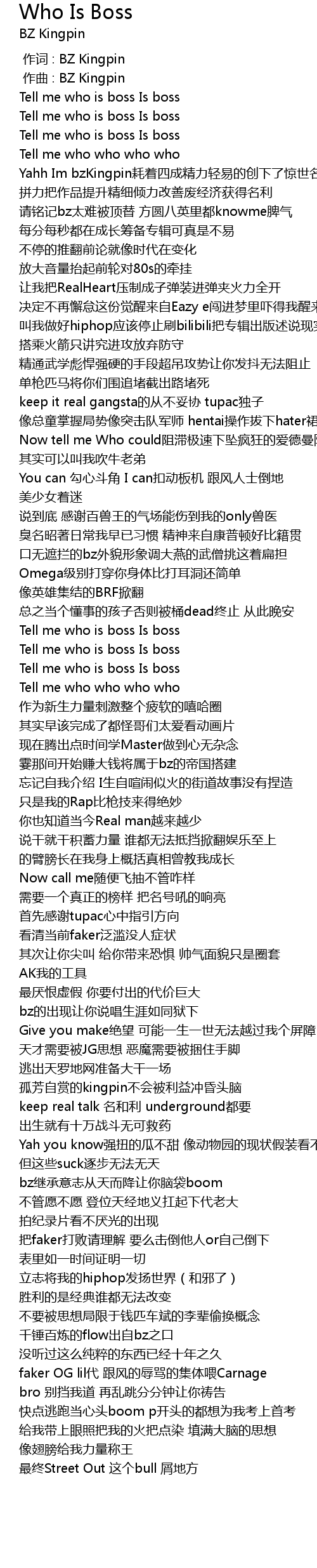 | [00:01.000] | zuò qǔ : BZ Kingpin |