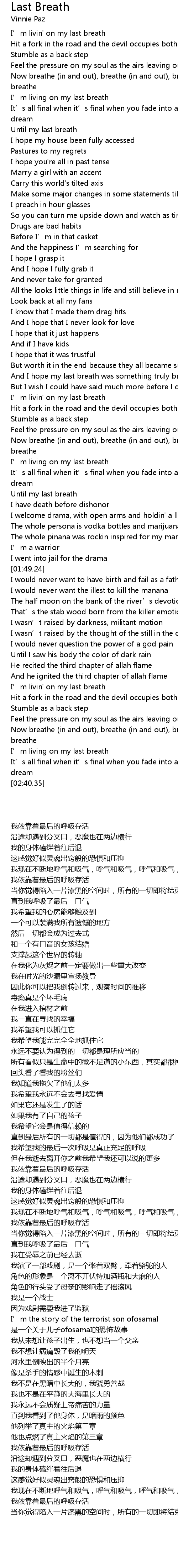 | [01:08.91] | And I hope my last breath was something truly breath full |