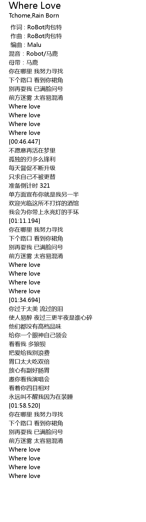 | [00:00.000] | 作词 : RoBot肉包特 |