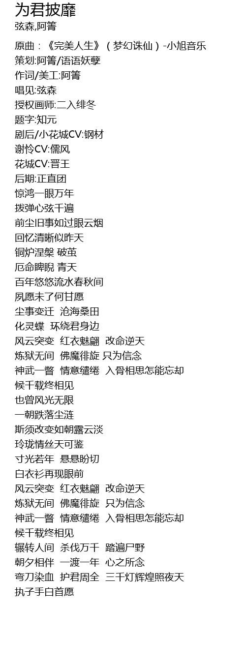 | [00:03.50] | 原曲:《完美人生》(梦幻诛仙)-小旭音乐 |