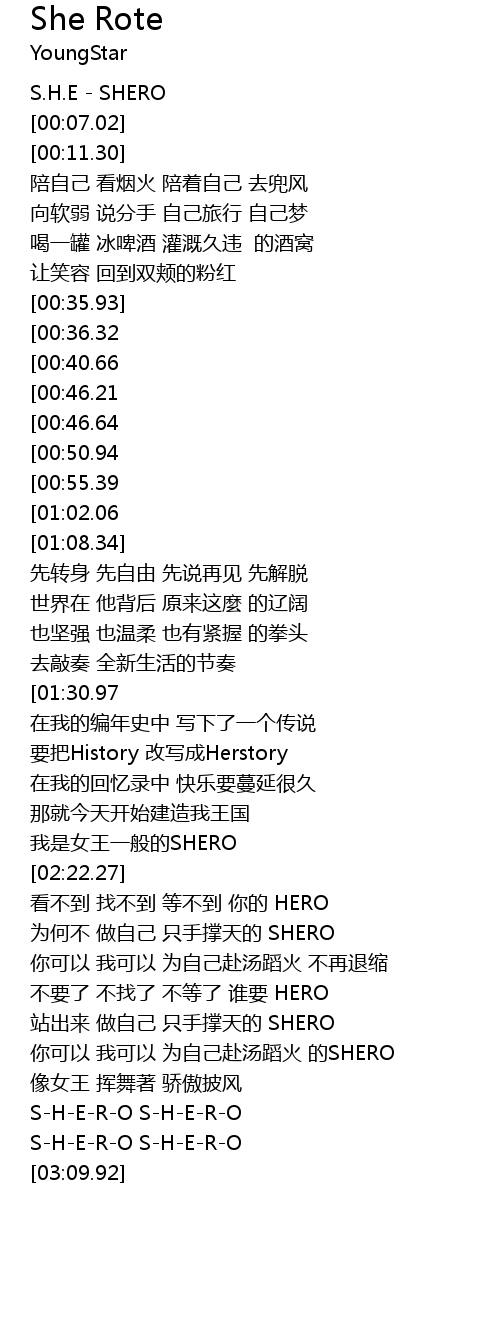 | [00:00.34] | S. H. E SHERO |