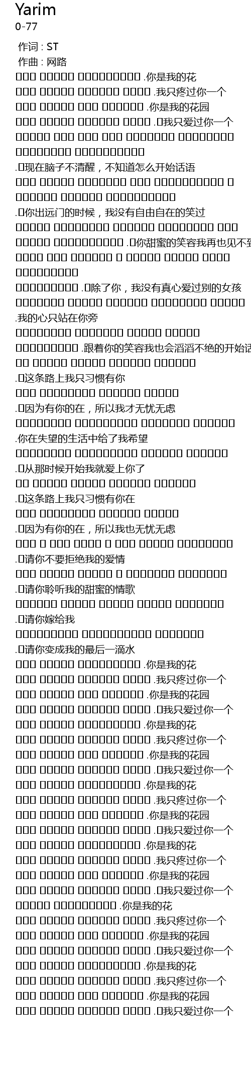 | [02:28.694] | سەن مېنىڭ سۆيگەن يارى .我只爱过你一个 |