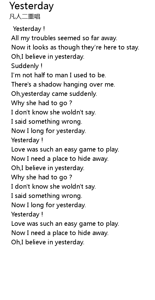 Oh,yesterday came suddenly. |