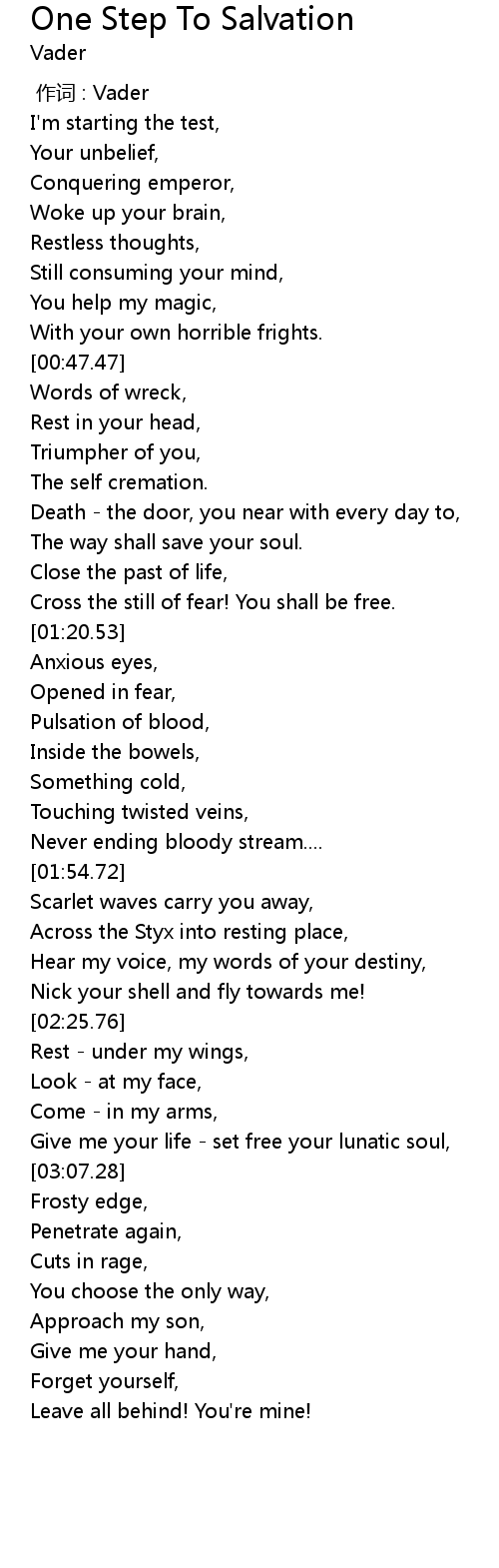 | 歌曲 | One Step To Salvation |