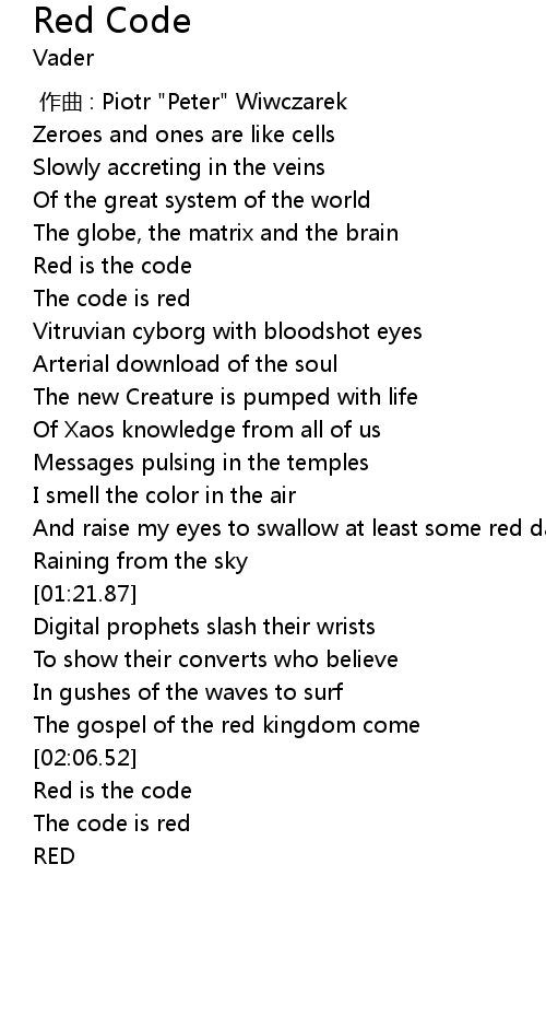 | [00:42.17] | The code is red |