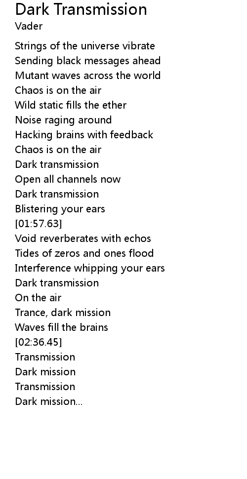 | [01:40.54] | Dark transmission |